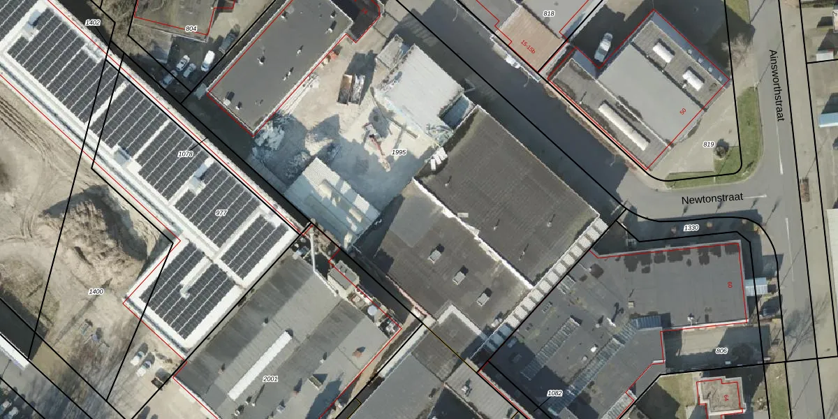 Het perceel waarop Newtonstraat 18-BE20 staat heeft een oppervlakte van 5075 m². Dit is een zeer groot perceel. De perceeloppervlakte wordt geregistreerd door het Kadaster. Gedetailleerde informatie over de maten van dit perceel kunt u vinden in het rapport Kadastrale kaart met maatvoering van Newtonstraat 18-BE20.