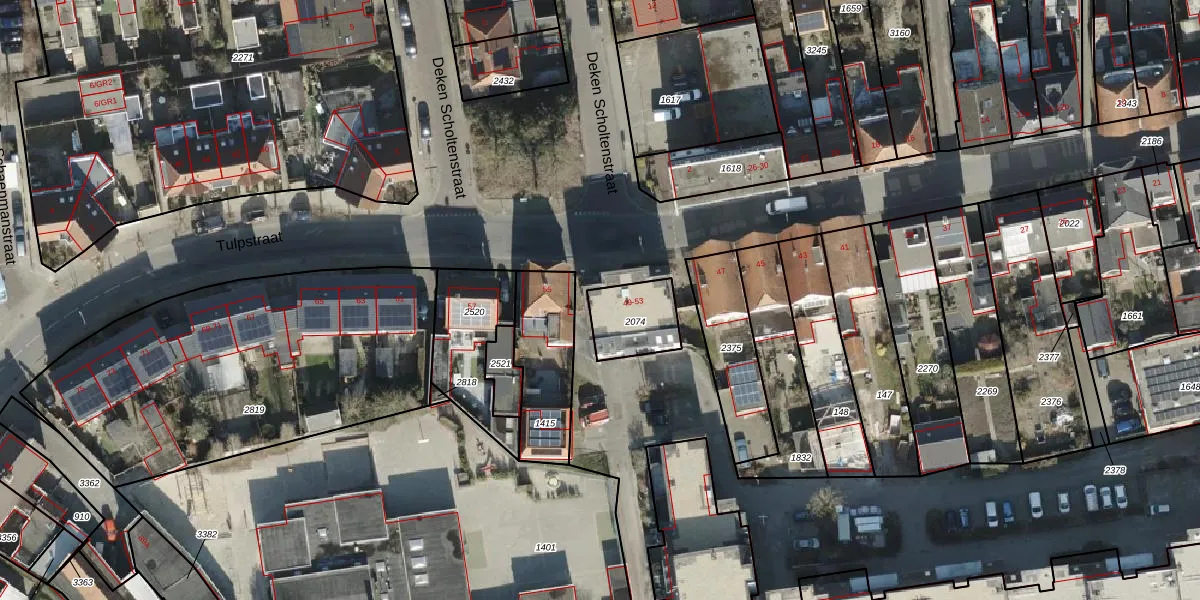 Het perceel waarop Tulpstraat 49 staat heeft een oppervlakte van 169 m². Dit is een middelgroot perceel. De perceeloppervlakte wordt geregistreerd door het Kadaster. Gedetailleerde informatie over de maten van dit perceel kunt u vinden in het rapport Kadastrale kaart met maatvoering van Tulpstraat 49.