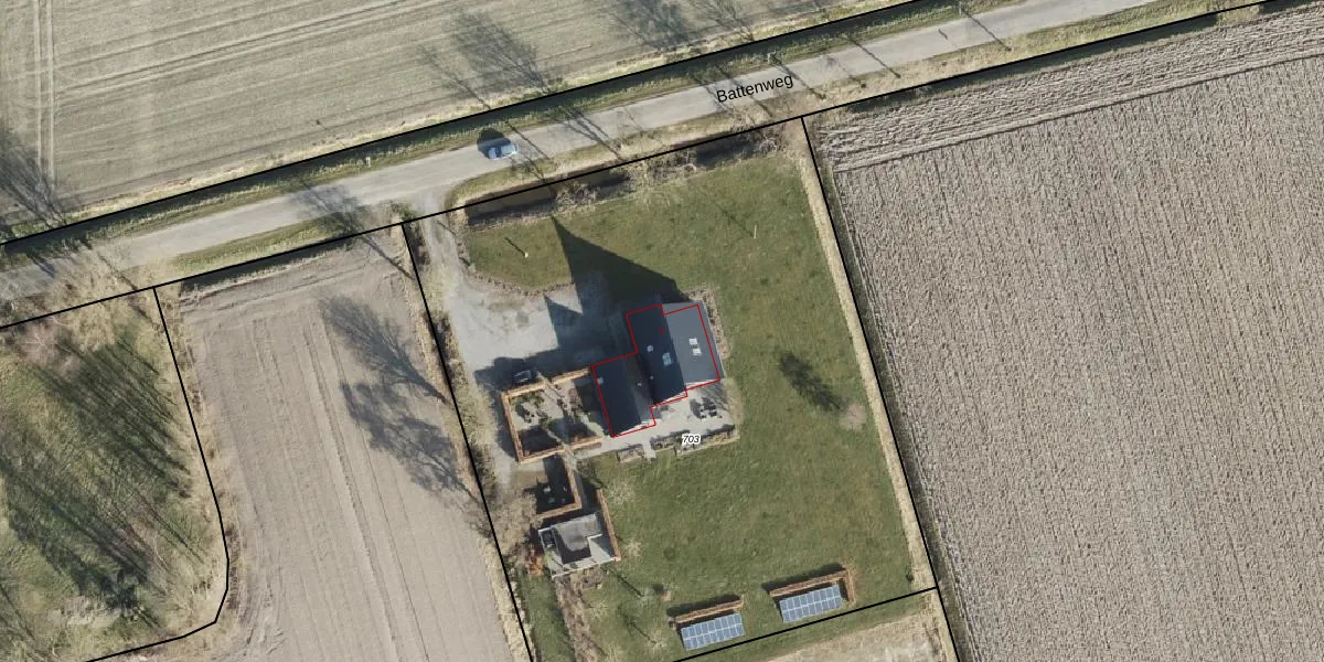 Het perceel waarop Battenweg 2 staat heeft een oppervlakte van 4637 m². Dit is een zeer groot perceel. De perceeloppervlakte wordt geregistreerd door het Kadaster. Gedetailleerde informatie over de maten van dit perceel kunt u vinden in het rapport Kadastrale kaart met maatvoering van Battenweg 2.