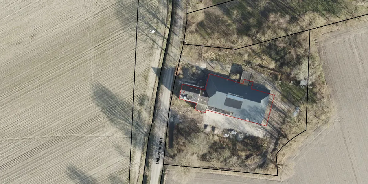 Het perceel waarop Dijkumerweg 3 staat heeft een oppervlakte van 4855 m². Dit is een zeer groot perceel. De perceeloppervlakte wordt geregistreerd door het Kadaster. Gedetailleerde informatie over de maten van dit perceel kunt u vinden in het rapport Kadastrale kaart met maatvoering van Dijkumerweg 3.