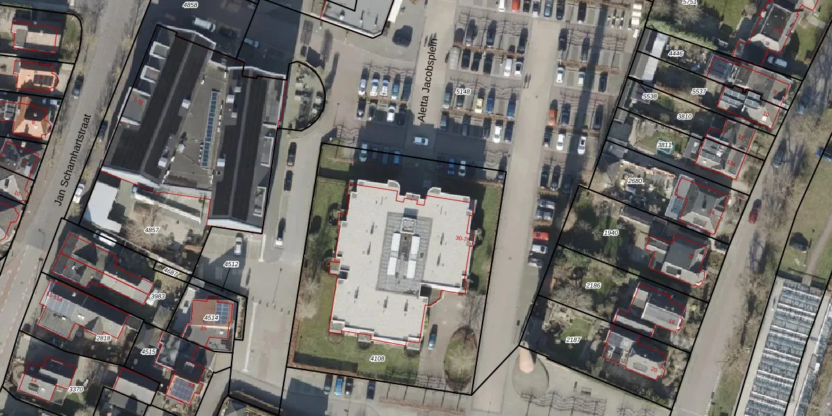 Aletta Jacobsplein 46 is gelegen op kadastraal perceel OLS00F4108. Deze kadastrale aanduiding is uniek en wordt gebruikt door het Kadaster om eigendomsrechten en andere zakelijke rechten vast te leggen. Het perceel maakt onderdeel uit van de kadastrale gemeente Olst.