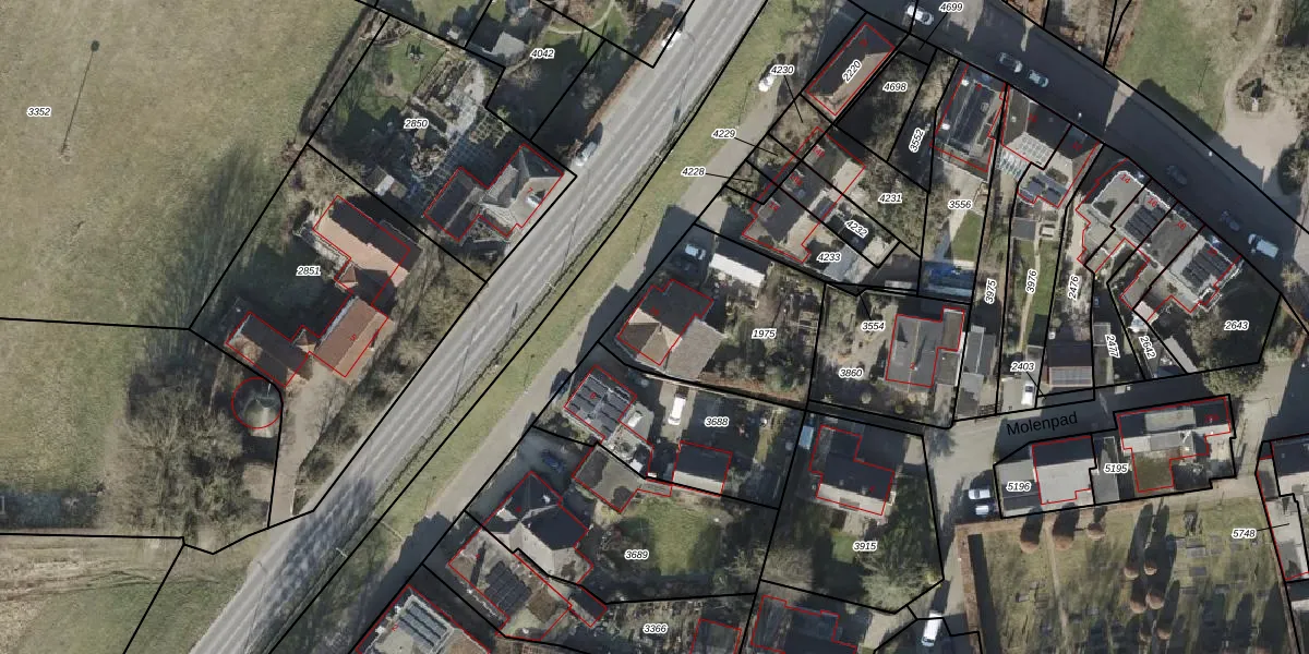 Gebruik de zoekbalk of klik op een perceel voor informatie over de adressen binnen dit perceel.