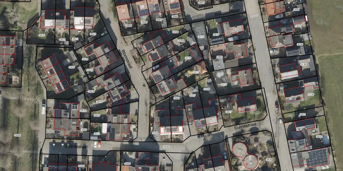Gebruik de zoekbalk of klik op een perceel voor informatie over de adressen binnen dit perceel.