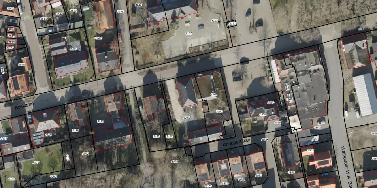Gebruik de zoekbalk of klik op een perceel voor informatie over de adressen binnen dit perceel.