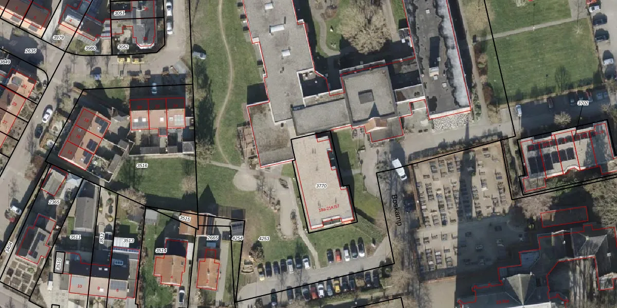 Boskamp 19-b is gelegen op kadastraal perceel OLS00E3770. Deze kadastrale aanduiding is uniek en wordt gebruikt door het Kadaster om eigendomsrechten en andere zakelijke rechten vast te leggen. Het perceel maakt onderdeel uit van de kadastrale gemeente Olst.