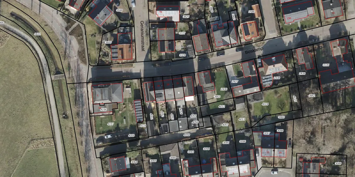 Gebruik de zoekbalk of klik op een perceel voor informatie over de adressen binnen dit perceel.