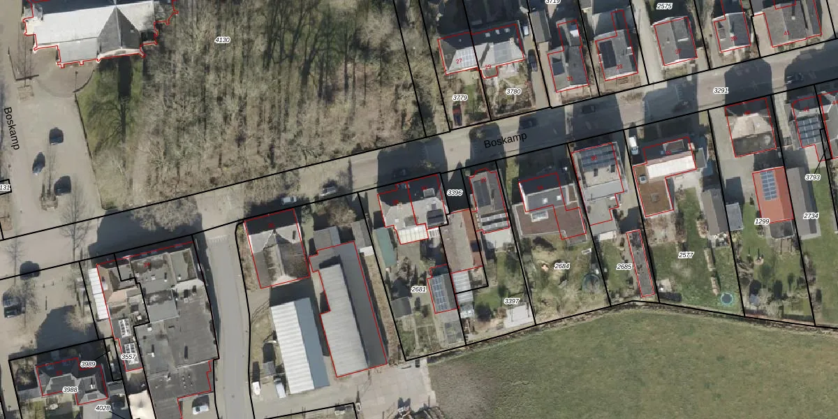 Het perceel waarop Boskamp 30 staat heeft een oppervlakte van 704 m². Dit is een groot perceel. De perceeloppervlakte wordt geregistreerd door het Kadaster. Gedetailleerde informatie over de maten van dit perceel kunt u vinden in het rapport Kadastrale kaart met maatvoering van Boskamp 30.