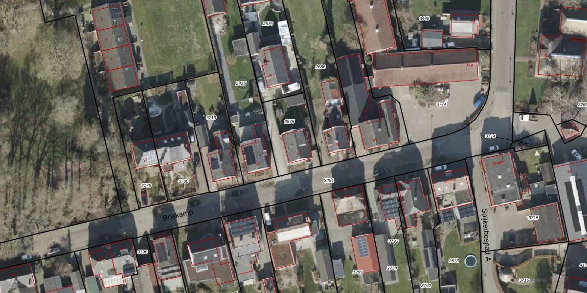 Gebruik de zoekbalk of klik op een perceel voor informatie over de adressen binnen dit perceel.