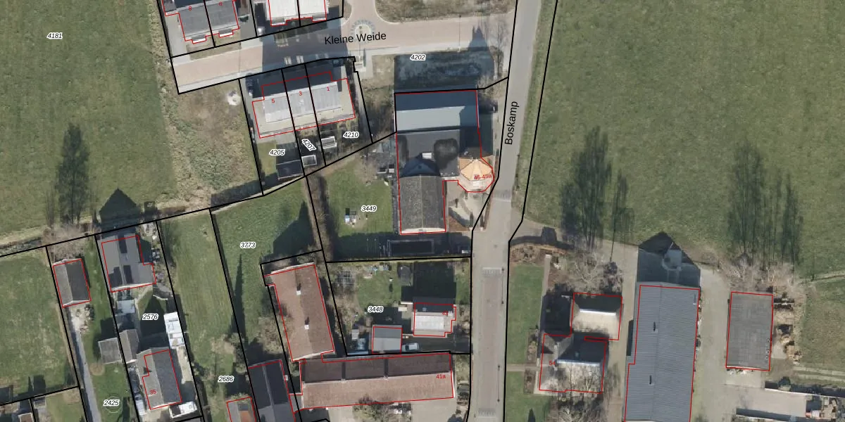Boskamp 45 is gelegen op kadastraal perceel OLS00E3449. Deze kadastrale aanduiding is uniek en wordt gebruikt door het Kadaster om eigendomsrechten en andere zakelijke rechten vast te leggen. Het perceel maakt onderdeel uit van de kadastrale gemeente Olst.