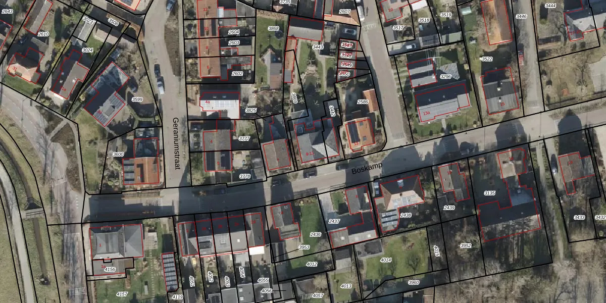 Het perceel waarop Boskamp 9 staat heeft een oppervlakte van 622 m². Dit is een groot perceel. De perceeloppervlakte wordt geregistreerd door het Kadaster. Gedetailleerde informatie over de maten van dit perceel kunt u vinden in het rapport Kadastrale kaart met maatvoering van Boskamp 9.