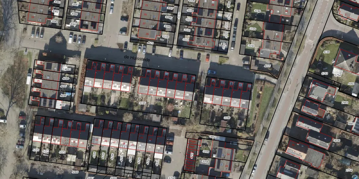 de Huisstede 20 is gelegen op kadastraal perceel OLS00F3195. Deze kadastrale aanduiding is uniek en wordt gebruikt door het Kadaster om eigendomsrechten en andere zakelijke rechten vast te leggen. Het perceel maakt onderdeel uit van de kadastrale gemeente Olst.