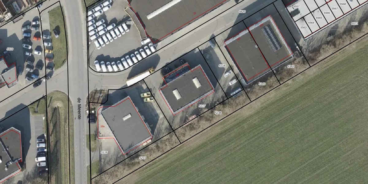 Het perceel waarop de Meente 16-b staat heeft een oppervlakte van 1124 m². Dit is een zeer groot perceel. De perceeloppervlakte wordt geregistreerd door het Kadaster. Gedetailleerde informatie over de maten van dit perceel kunt u vinden in het rapport Kadastrale kaart met maatvoering van de Meente 16-b.