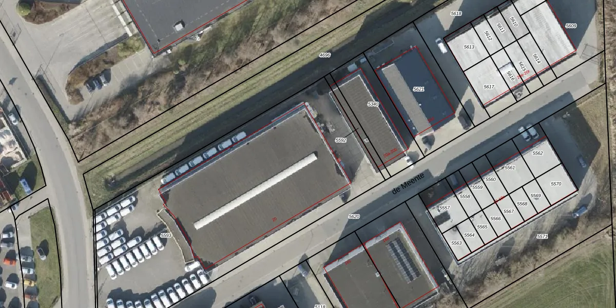 de Meente 20 is gelegen op kadastraal perceel OLS00B5593. Deze kadastrale aanduiding is uniek en wordt gebruikt door het Kadaster om eigendomsrechten en andere zakelijke rechten vast te leggen. Het perceel maakt onderdeel uit van de kadastrale gemeente Olst.