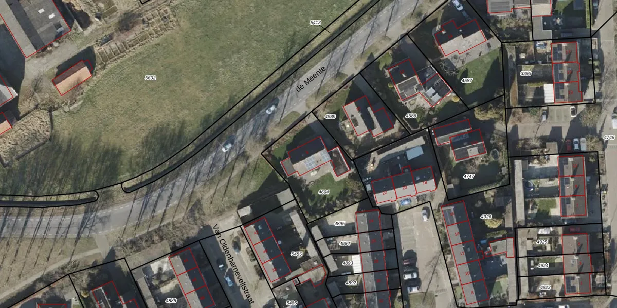 Het perceel waarop de Meente 8 staat heeft een oppervlakte van 655 m². Dit is een groot perceel. De perceeloppervlakte wordt geregistreerd door het Kadaster. Gedetailleerde informatie over de maten van dit perceel kunt u vinden in het rapport Kadastrale kaart met maatvoering van de Meente 8.