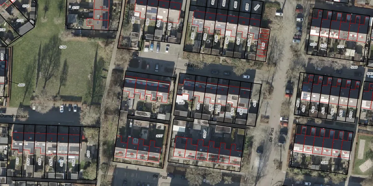 Het perceel waarop de Pas 12 staat heeft een oppervlakte van 209 m². Dit is een middelgroot perceel. De perceeloppervlakte wordt geregistreerd door het Kadaster. Gedetailleerde informatie over de maten van dit perceel kunt u vinden in het rapport Kadastrale kaart met maatvoering van de Pas 12.