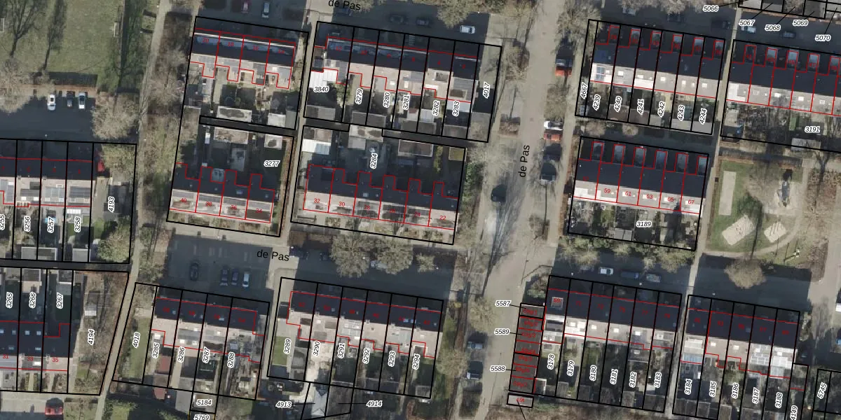 Het perceel waarop de Pas 24 staat heeft een oppervlakte van 920 m². Dit is een groot perceel. De perceeloppervlakte wordt geregistreerd door het Kadaster. Gedetailleerde informatie over de maten van dit perceel kunt u vinden in het rapport Kadastrale kaart met maatvoering van de Pas 24.