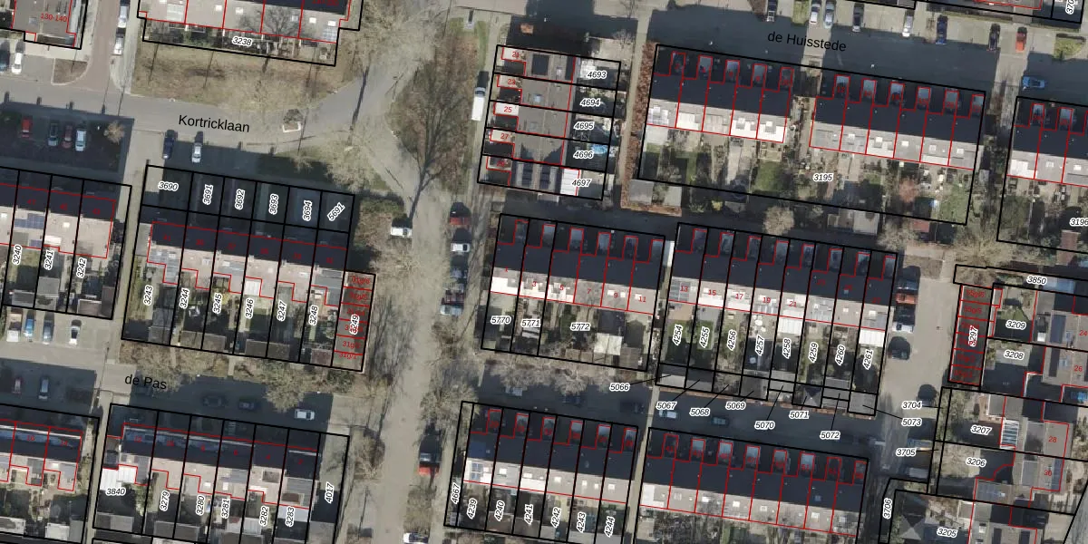 Gebruik de zoekbalk of klik op een perceel voor informatie over de adressen binnen dit perceel.