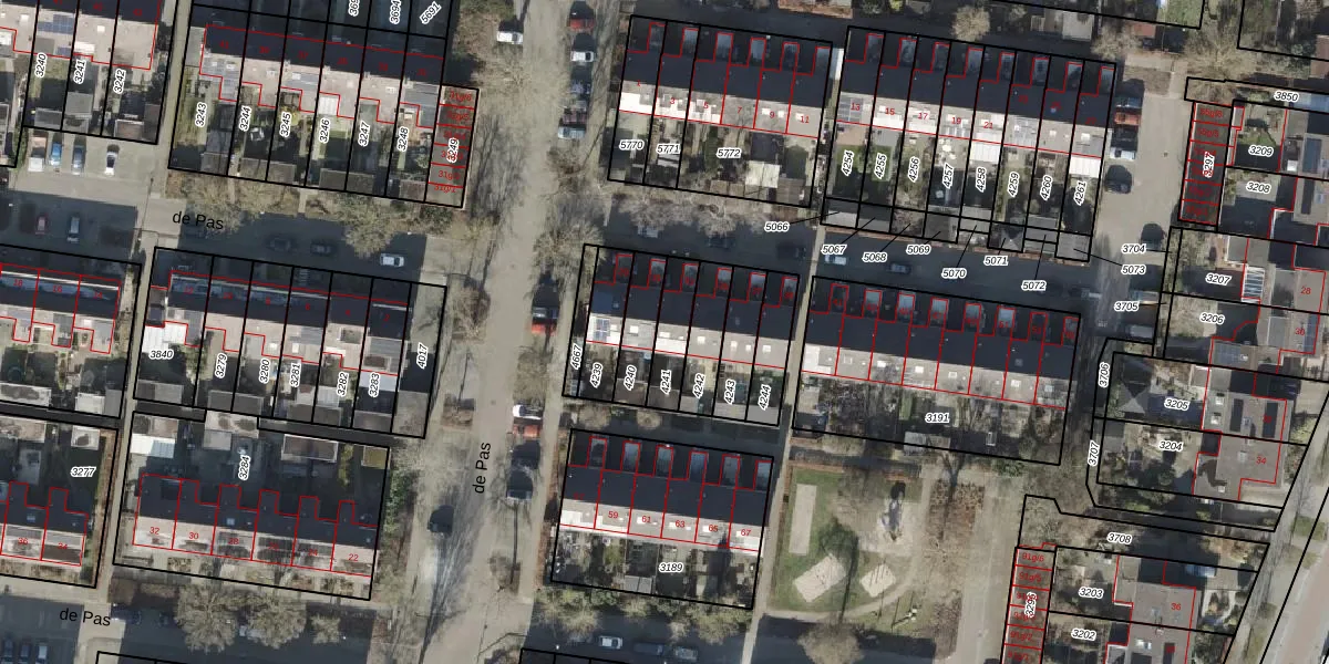 Het perceel waarop de Pas 33 staat heeft een oppervlakte van 116 m². Dit is een middelgroot perceel. De perceeloppervlakte wordt geregistreerd door het Kadaster. Gedetailleerde informatie over de maten van dit perceel kunt u vinden in het rapport Kadastrale kaart met maatvoering van de Pas 33.