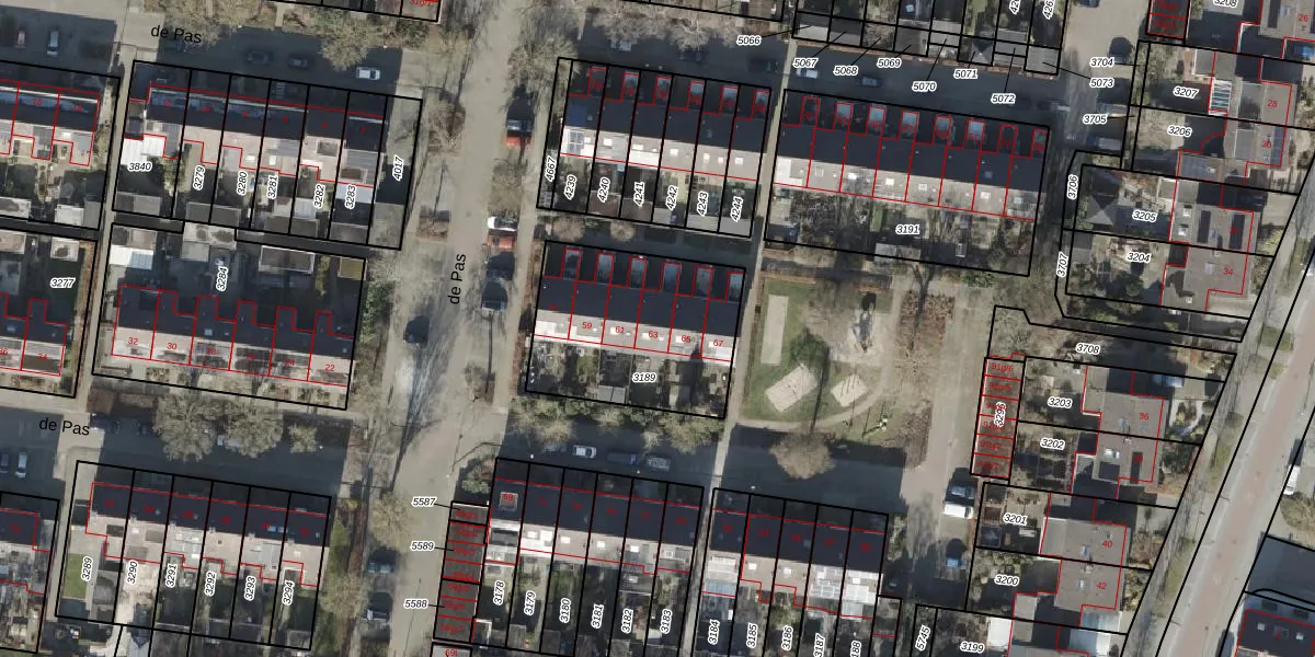 Het perceel waarop de Pas 63 staat heeft een oppervlakte van 703 m². Dit is een groot perceel. De perceeloppervlakte wordt geregistreerd door het Kadaster. Gedetailleerde informatie over de maten van dit perceel kunt u vinden in het rapport Kadastrale kaart met maatvoering van de Pas 63.