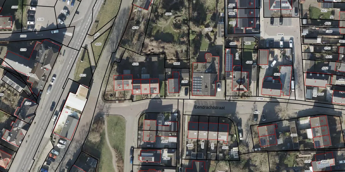 Gebruik de zoekbalk of klik op een perceel voor informatie over de adressen binnen dit perceel.