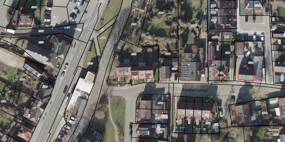Eendrachtstraat 28 is gelegen op kadastraal perceel OLS00B4332. Deze kadastrale aanduiding is uniek en wordt gebruikt door het Kadaster om eigendomsrechten en andere zakelijke rechten vast te leggen. Het perceel maakt onderdeel uit van de kadastrale gemeente Olst.