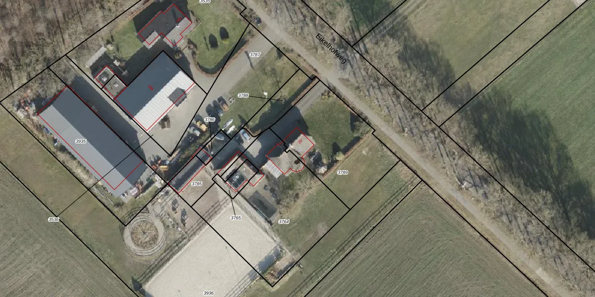 Eikelhofweg 20 is gelegen op kadastraal perceel OLS00E3789. Deze kadastrale aanduiding is uniek en wordt gebruikt door het Kadaster om eigendomsrechten en andere zakelijke rechten vast te leggen. Het perceel maakt onderdeel uit van de kadastrale gemeente Olst.