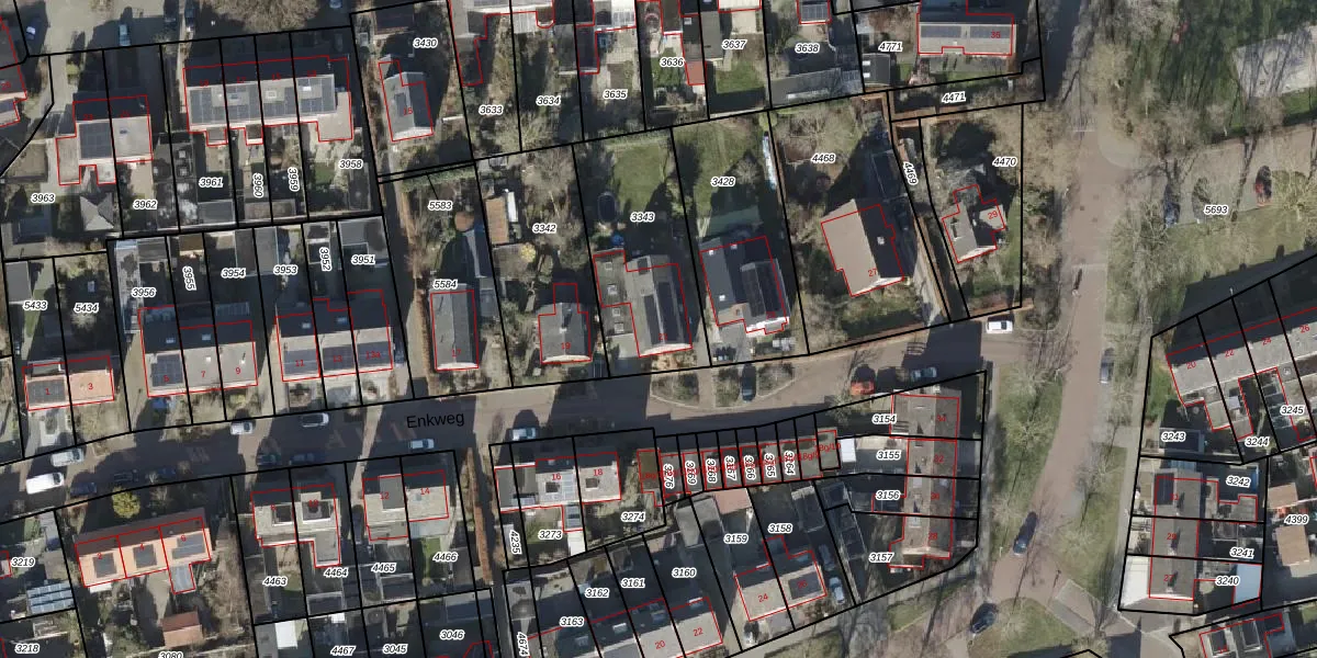 Gebruik de zoekbalk of klik op een perceel voor informatie over de adressen binnen dit perceel.