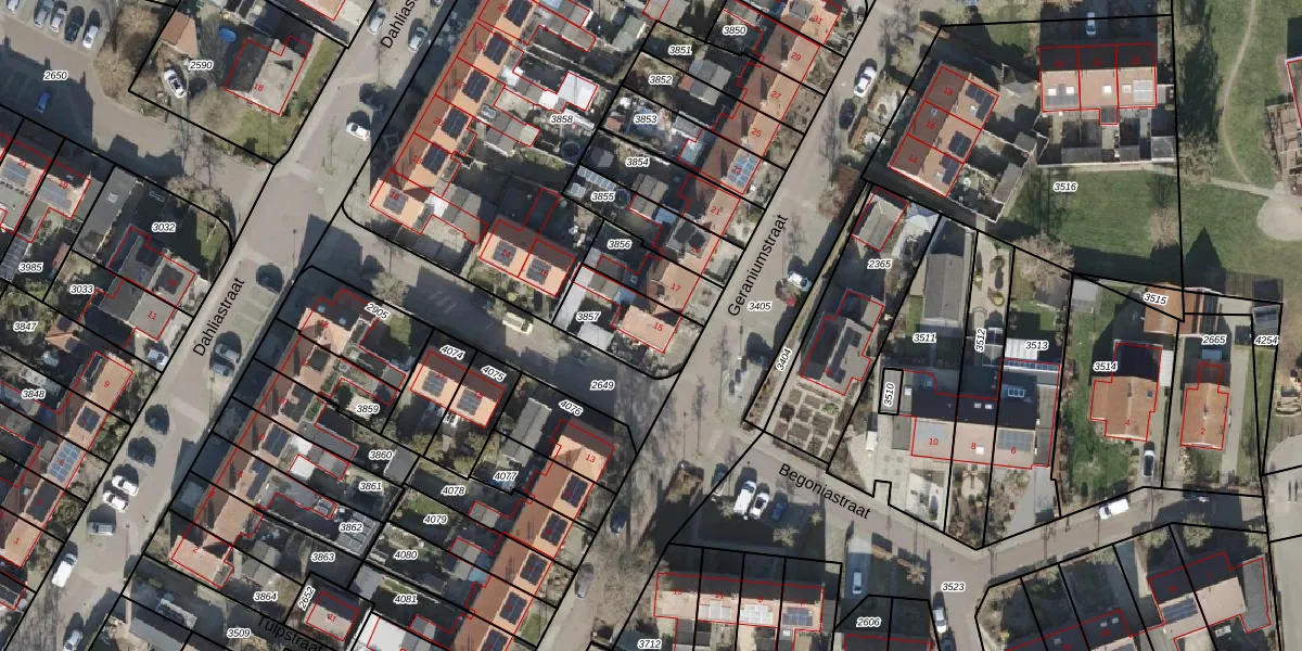 Geraniumstraat 15 is gelegen op kadastraal perceel OLS00E3857. Deze kadastrale aanduiding is uniek en wordt gebruikt door het Kadaster om eigendomsrechten en andere zakelijke rechten vast te leggen. Het perceel maakt onderdeel uit van de kadastrale gemeente Olst.