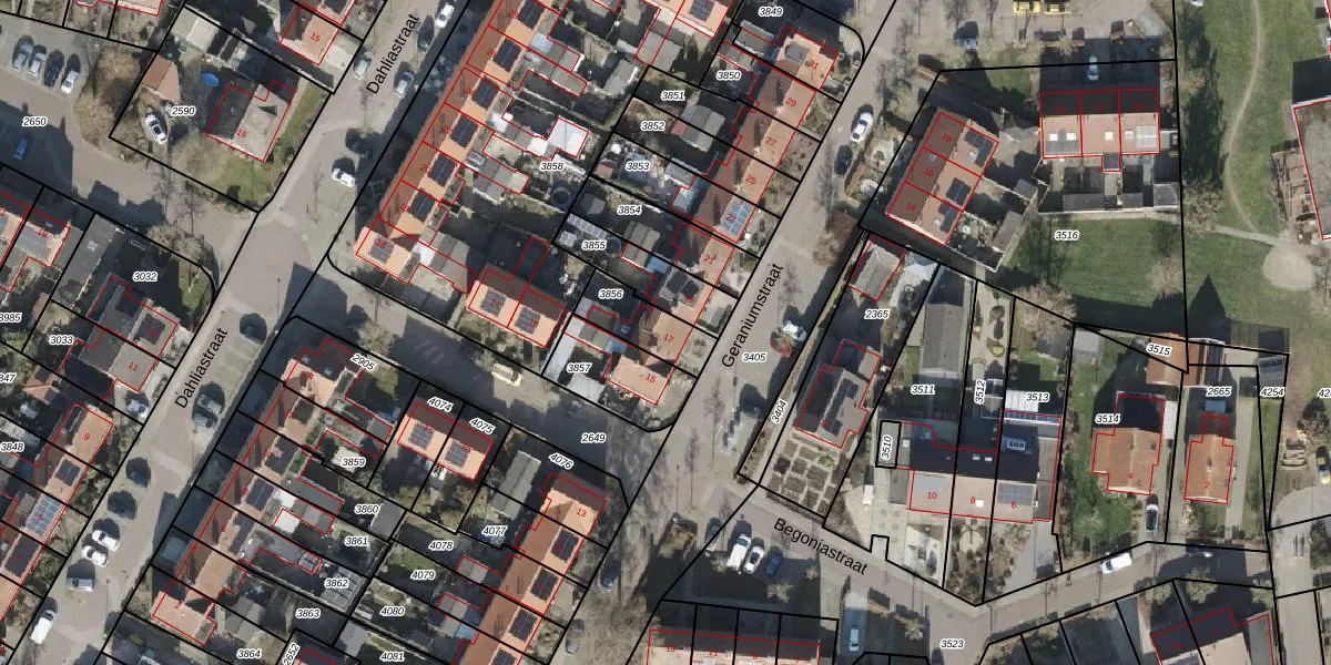 Gebruik de zoekbalk of klik op een perceel voor informatie over de adressen binnen dit perceel.