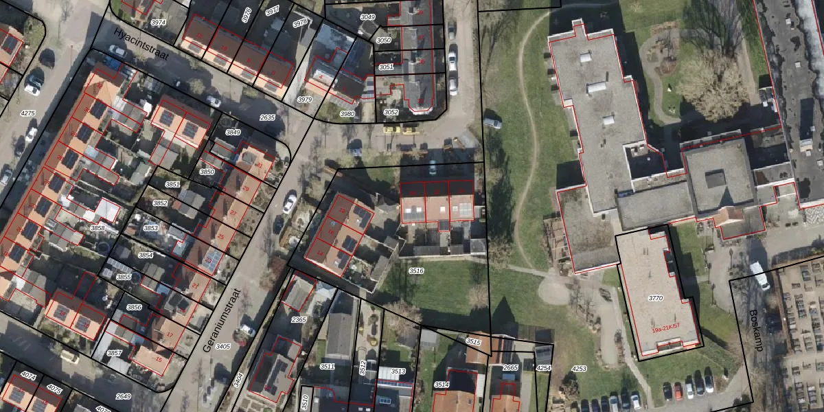 Geraniumstraat 20 is gelegen op kadastraal perceel OLS00E3516. Deze kadastrale aanduiding is uniek en wordt gebruikt door het Kadaster om eigendomsrechten en andere zakelijke rechten vast te leggen. Het perceel maakt onderdeel uit van de kadastrale gemeente Olst.