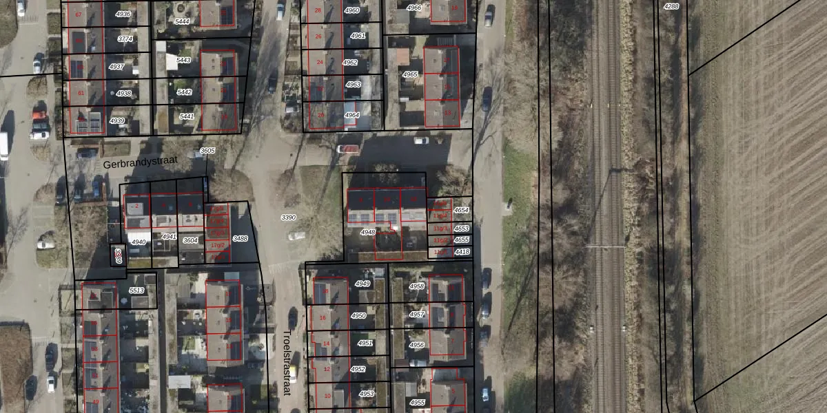 Gerbrandystraat 12 is gelegen op kadastraal perceel OLS00B4948. Deze kadastrale aanduiding is uniek en wordt gebruikt door het Kadaster om eigendomsrechten en andere zakelijke rechten vast te leggen. Het perceel maakt onderdeel uit van de kadastrale gemeente Olst.