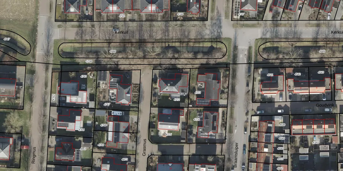 Het perceel waarop Grasmus 6 staat heeft een oppervlakte van 488 m². Dit is een groot perceel. De perceeloppervlakte wordt geregistreerd door het Kadaster. Gedetailleerde informatie over de maten van dit perceel kunt u vinden in het rapport Kadastrale kaart met maatvoering van Grasmus 6.