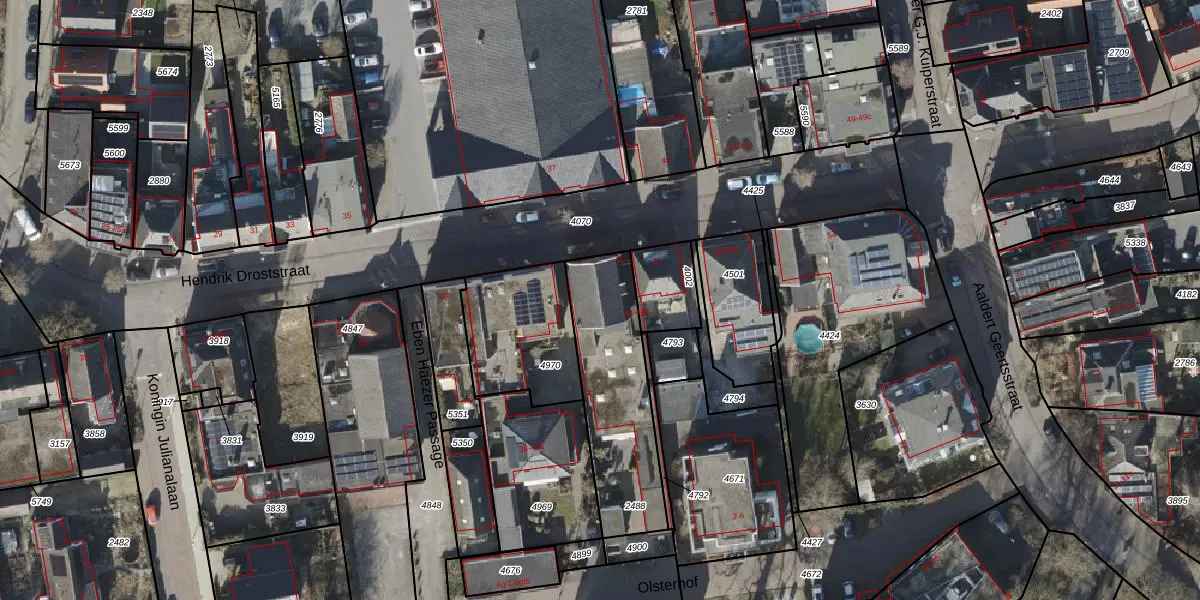 Hendrik Droststraat 44-a is gelegen op kadastraal perceel OLS00F2488. Deze kadastrale aanduiding is uniek en wordt gebruikt door het Kadaster om eigendomsrechten en andere zakelijke rechten vast te leggen. Het perceel maakt onderdeel uit van de kadastrale gemeente Olst.