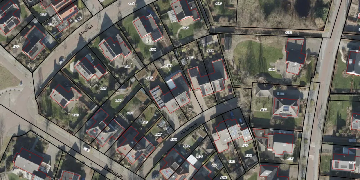 Het perceel waarop Holenduif 6 staat heeft een oppervlakte van 432 m². Dit is een groot perceel. De perceeloppervlakte wordt geregistreerd door het Kadaster. Gedetailleerde informatie over de maten van dit perceel kunt u vinden in het rapport Kadastrale kaart met maatvoering van Holenduif 6.