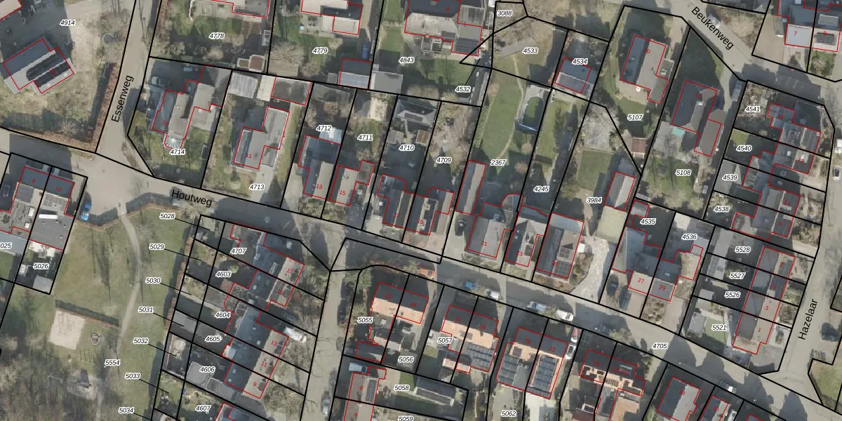 Gebruik de zoekbalk of klik op een perceel voor informatie over de adressen binnen dit perceel.