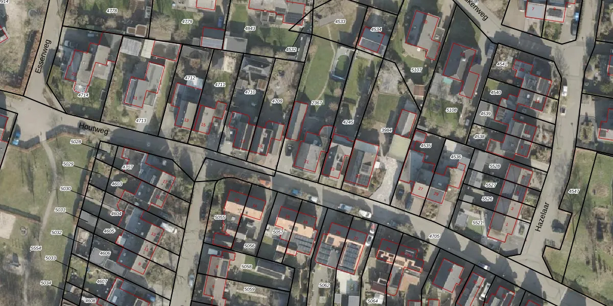 Het perceel waarop Houtweg 21 staat heeft een oppervlakte van 665 m². Dit is een groot perceel. De perceeloppervlakte wordt geregistreerd door het Kadaster. Gedetailleerde informatie over de maten van dit perceel kunt u vinden in het rapport Kadastrale kaart met maatvoering van Houtweg 21.