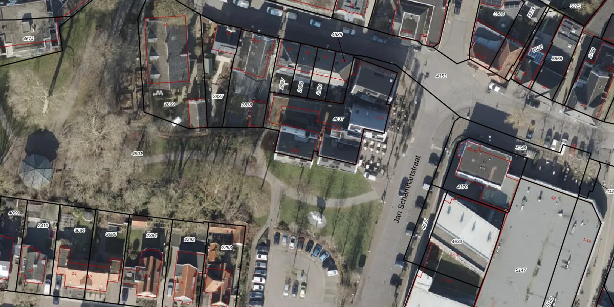 Het perceel waarop Jan Schamhartstraat 2-k staat heeft een oppervlakte van 826 m². Dit is een groot perceel. De perceeloppervlakte wordt geregistreerd door het Kadaster. Gedetailleerde informatie over de maten van dit perceel kunt u vinden in het rapport Kadastrale kaart met maatvoering van Jan Schamhartstraat 2-k.