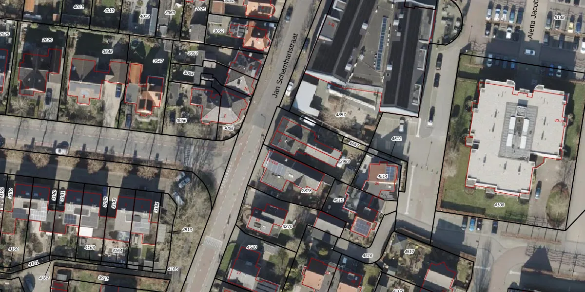 Het perceel waarop Jan Schamhartstraat 9 staat heeft een oppervlakte van 457 m². Dit is een groot perceel. De perceeloppervlakte wordt geregistreerd door het Kadaster. Gedetailleerde informatie over de maten van dit perceel kunt u vinden in het rapport Kadastrale kaart met maatvoering van Jan Schamhartstraat 9.