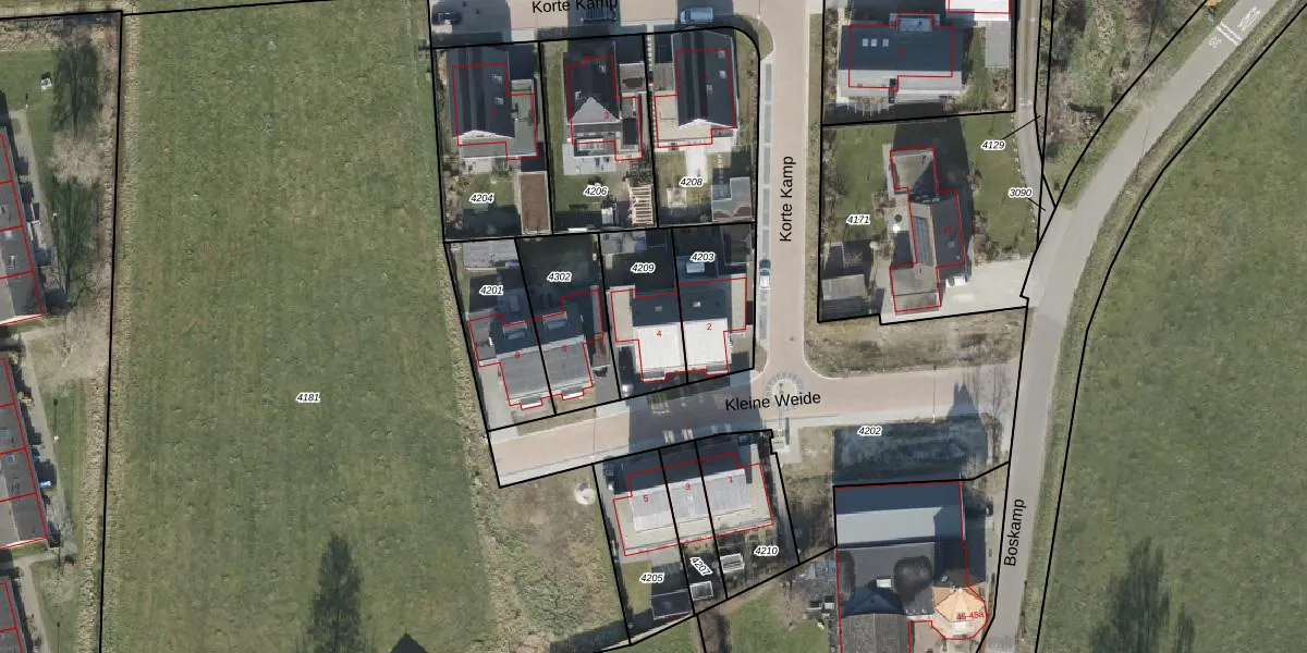 Kleine Weide 4 is gelegen op kadastraal perceel OLS00E4209. Deze kadastrale aanduiding is uniek en wordt gebruikt door het Kadaster om eigendomsrechten en andere zakelijke rechten vast te leggen. Het perceel maakt onderdeel uit van de kadastrale gemeente Olst.