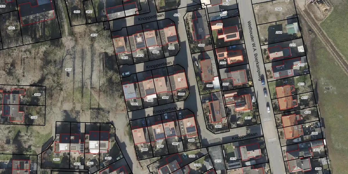 Knoppertlaan 10 is gelegen op kadastraal perceel OLS00E3885. Deze kadastrale aanduiding is uniek en wordt gebruikt door het Kadaster om eigendomsrechten en andere zakelijke rechten vast te leggen. Het perceel maakt onderdeel uit van de kadastrale gemeente Olst.