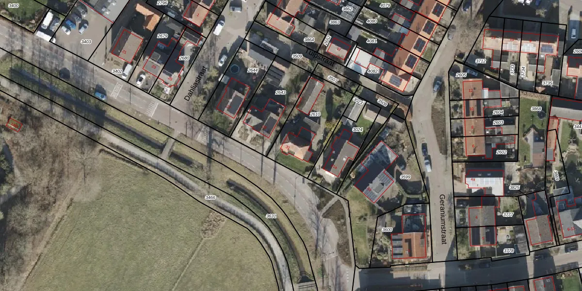 Gebruik de zoekbalk of klik op een perceel voor informatie over de adressen binnen dit perceel.