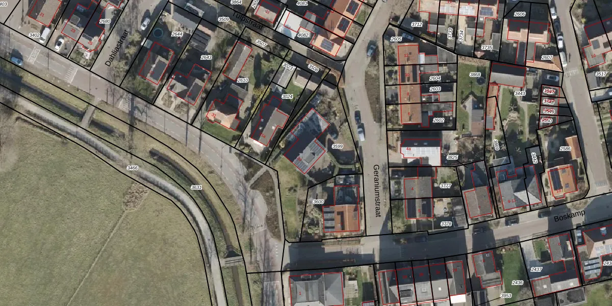 Gebruik de zoekbalk of klik op een perceel voor informatie over de adressen binnen dit perceel.
