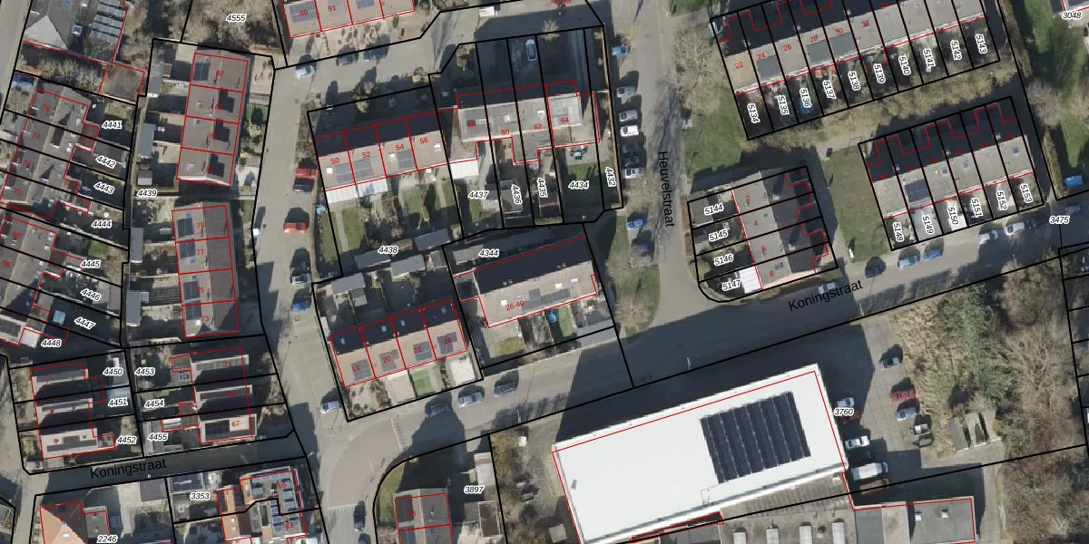 Het perceel waarop Koningstraat 38 staat heeft een oppervlakte van 588 m². Dit is een groot perceel. De perceeloppervlakte wordt geregistreerd door het Kadaster. Gedetailleerde informatie over de maten van dit perceel kunt u vinden in het rapport Kadastrale kaart met maatvoering van Koningstraat 38.