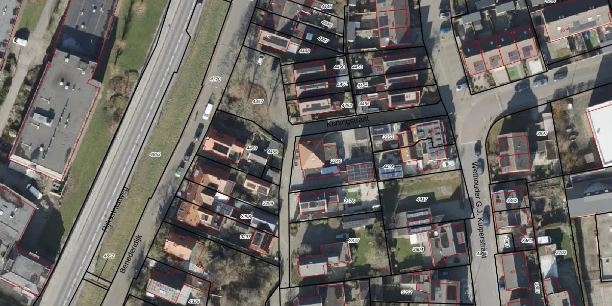 Het perceel waarop Koningstraat 7 staat heeft een oppervlakte van 473 m². Dit is een groot perceel. De perceeloppervlakte wordt geregistreerd door het Kadaster. Gedetailleerde informatie over de maten van dit perceel kunt u vinden in het rapport Kadastrale kaart met maatvoering van Koningstraat 7.