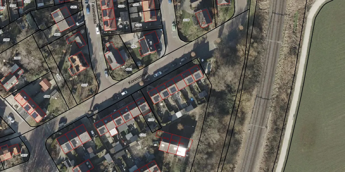 Het perceel waarop Korenstraat 23 staat heeft een oppervlakte van 5067 m². Dit is een zeer groot perceel. De perceeloppervlakte wordt geregistreerd door het Kadaster. Gedetailleerde informatie over de maten van dit perceel kunt u vinden in het rapport Kadastrale kaart met maatvoering van Korenstraat 23.