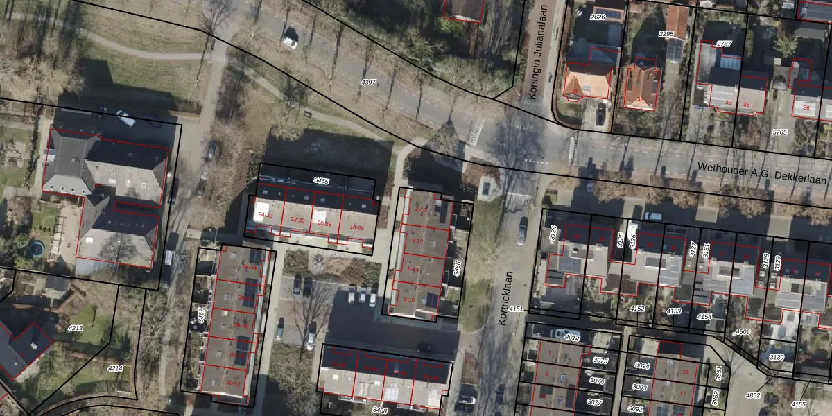 Kortricklaan 2 is gelegen op kadastraal perceel OLS00F3466. Deze kadastrale aanduiding is uniek en wordt gebruikt door het Kadaster om eigendomsrechten en andere zakelijke rechten vast te leggen. Het perceel maakt onderdeel uit van de kadastrale gemeente Olst.