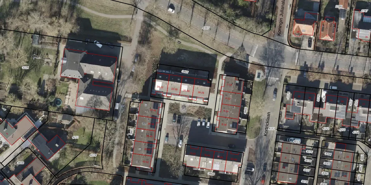Kortricklaan 20 is gelegen op kadastraal perceel OLS00F3465. Deze kadastrale aanduiding is uniek en wordt gebruikt door het Kadaster om eigendomsrechten en andere zakelijke rechten vast te leggen. Het perceel maakt onderdeel uit van de kadastrale gemeente Olst.