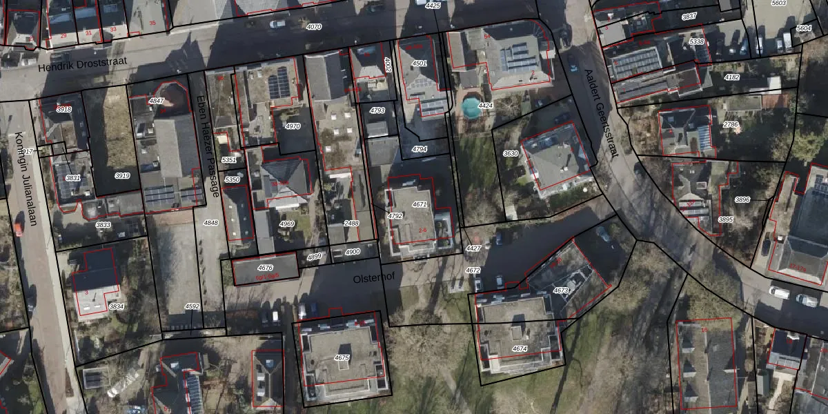 Het perceel waarop Olsterhof 4 staat heeft een oppervlakte van 539 m². Dit is een groot perceel. De perceeloppervlakte wordt geregistreerd door het Kadaster. Gedetailleerde informatie over de maten van dit perceel kunt u vinden in het rapport Kadastrale kaart met maatvoering van Olsterhof 4.