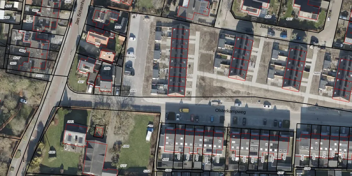 Het perceel waarop Olsterkampweg 3 staat heeft een oppervlakte van 6517 m². Dit is een zeer groot perceel. De perceeloppervlakte wordt geregistreerd door het Kadaster. Gedetailleerde informatie over de maten van dit perceel kunt u vinden in het rapport Kadastrale kaart met maatvoering van Olsterkampweg 3.