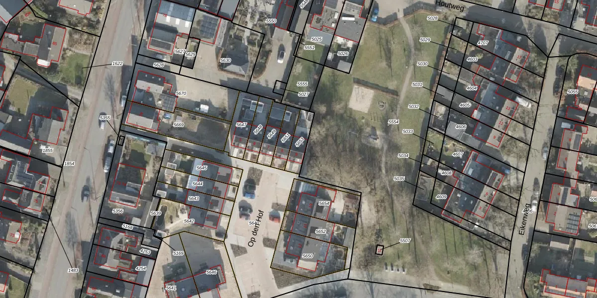 Het perceel waarop Op den Hof 9 staat heeft een oppervlakte van 108 m². Dit is een middelgroot perceel. De perceeloppervlakte wordt geregistreerd door het Kadaster. Gedetailleerde informatie over de maten van dit perceel kunt u vinden in het rapport Kadastrale kaart met maatvoering van Op den Hof 9.